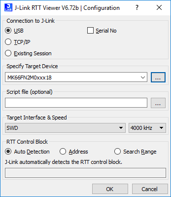 - The RTT Control Block can be searched for fully automatically, it can be set to a fixed address or it can be searched for in one or more specific memory ranges.
