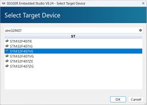 - Select the used device in the target selection dialog
